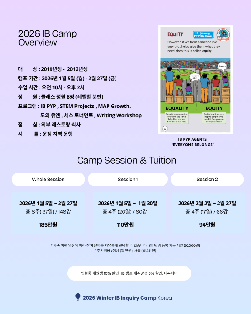 IB 캠프 재수강생 / 형제자매 – 5% 할인