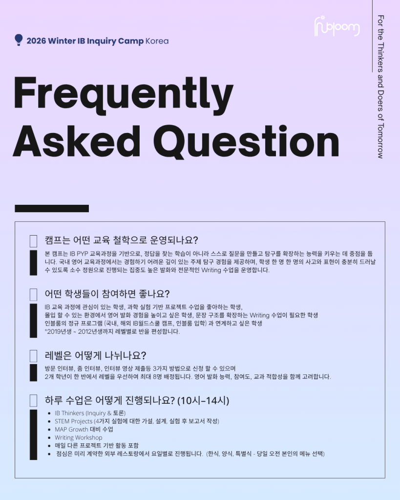 인블룸 해외·제주 캠프 연계 참여자 – 20% 할인