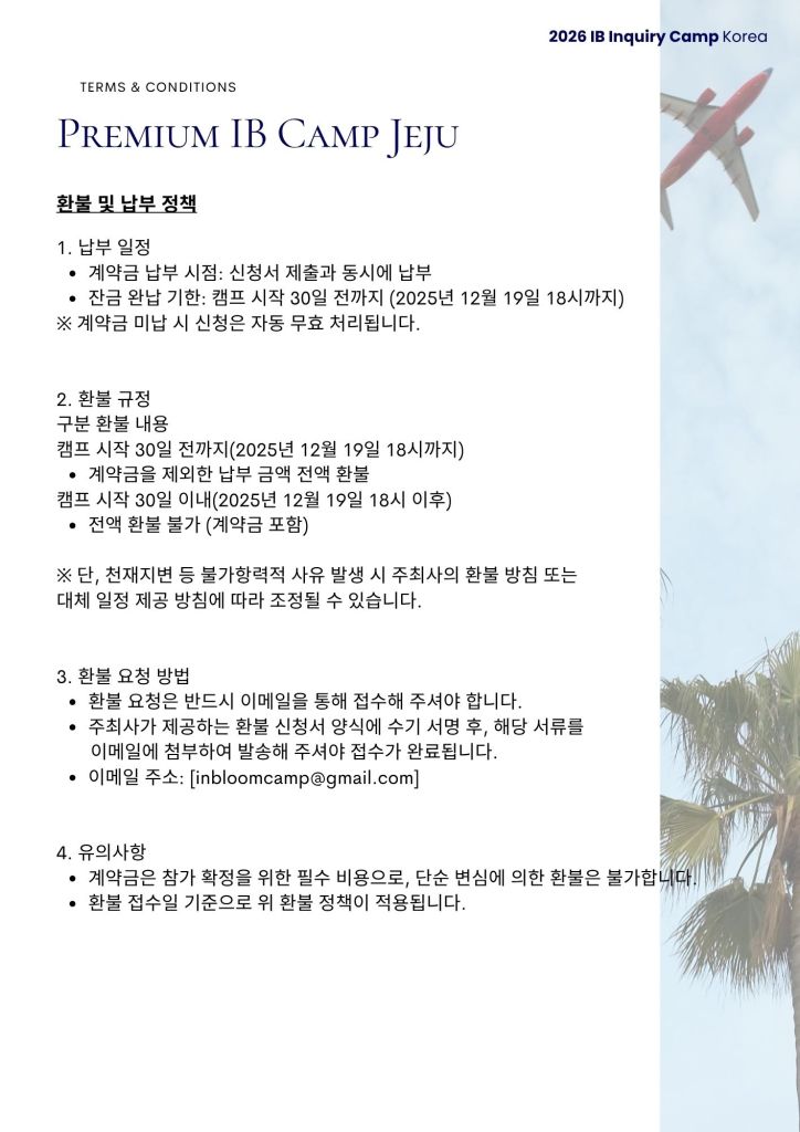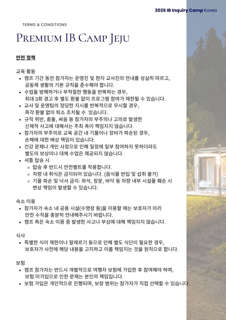2026 Premium IB Camp Jeju 겨울 캠프 신청서
